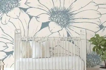 Large florals like Hand-Drawn Daisy are popular right now, and not just for nurseries and kids’ rooms.